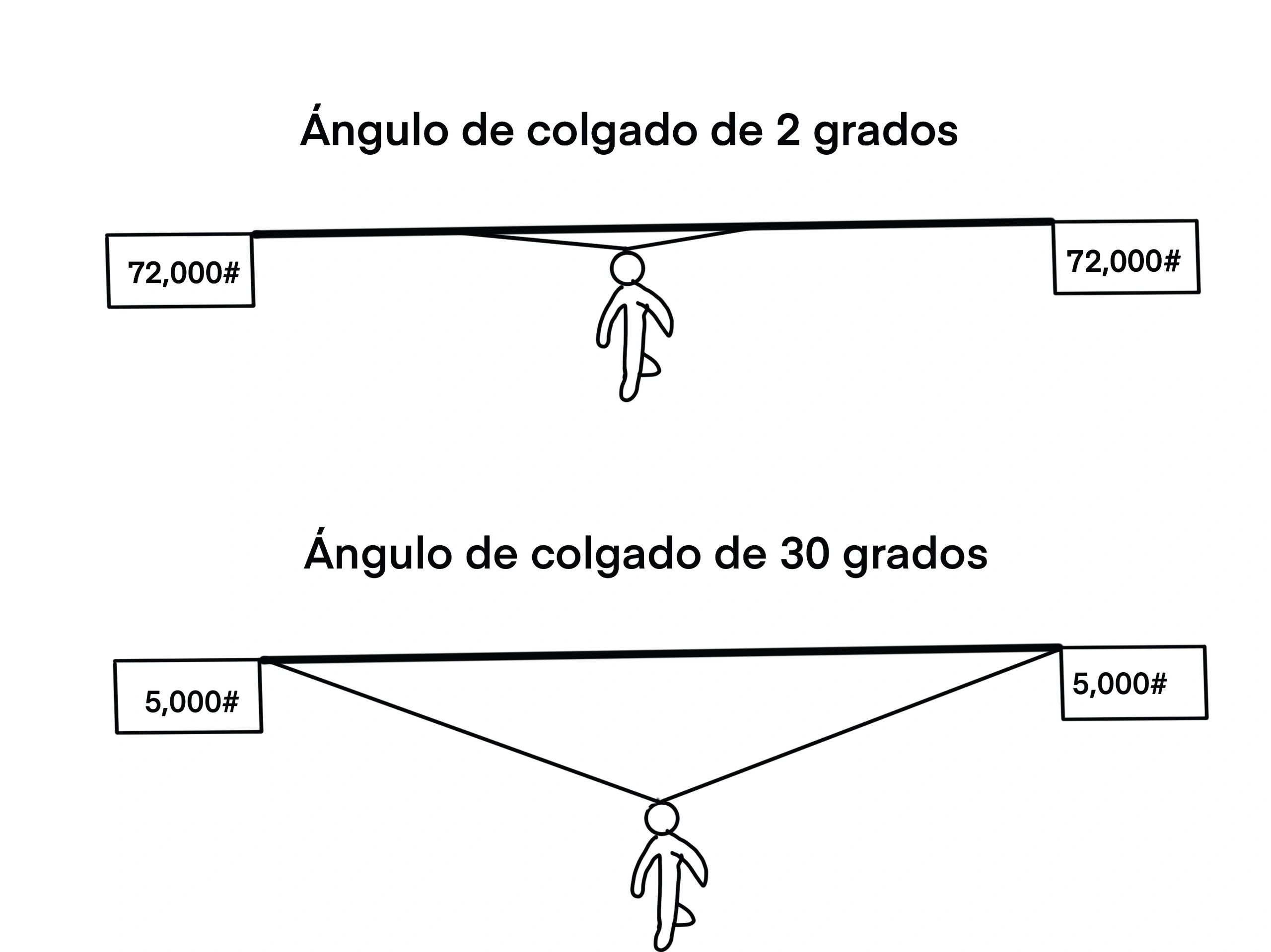 Los esfuerzos en los anclajes extremos son exponencialmente superiores al peso de una persona.