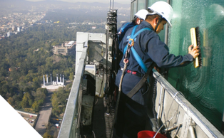 Nuestro personal de limpieza de fachadas está certificado para realizar Trabajo en las Alturas, de acuerdo con la NOM-009-STPS-2011. Trabajamos con góndolas de limpieza o hacemos descenso por cuerda, según requiera el edificio.